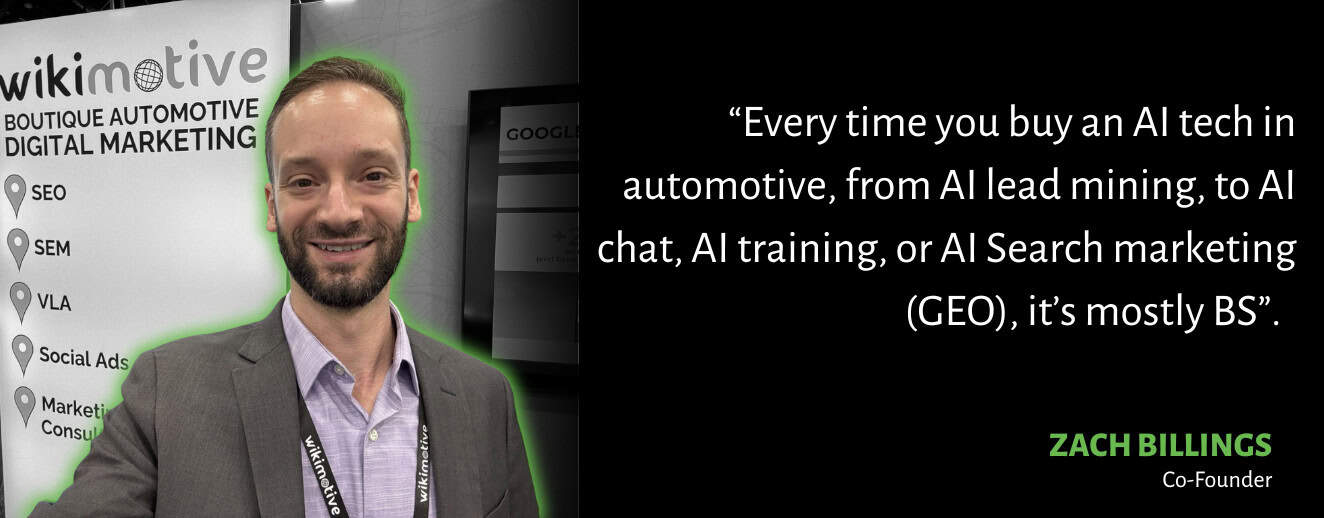 Every time you buy an AI tech in automotive, from AI lead mining to AI chat, AI training, or AI Search marketing (GEO), it’s mostly BS. There are real solutions available, but almost everything selling itself as a quick fix that you don’t have to work for is lying to you. So what can you do?